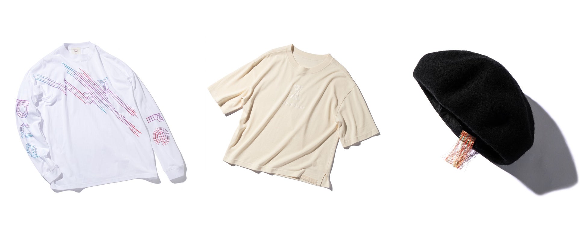 ■商品コンセプト:コラボのキーモチーフである「無限三角」を中心に、過去の大陸をイメージした地球、時の流れを感じる鹿の角、そして祈るポーズやハイタッチなど様々な捉え方ができる手を組み合わせ、「過去~現在~未来へバトンを繋げていく」というイメージを表現しました。「繋がる」という概念を表現したグラフィックは、一度役割を終えたものであっても、再生し、スタートをきることで新しいモノに生まれ変わっていくという、服との付き合い方への想いを込めています。