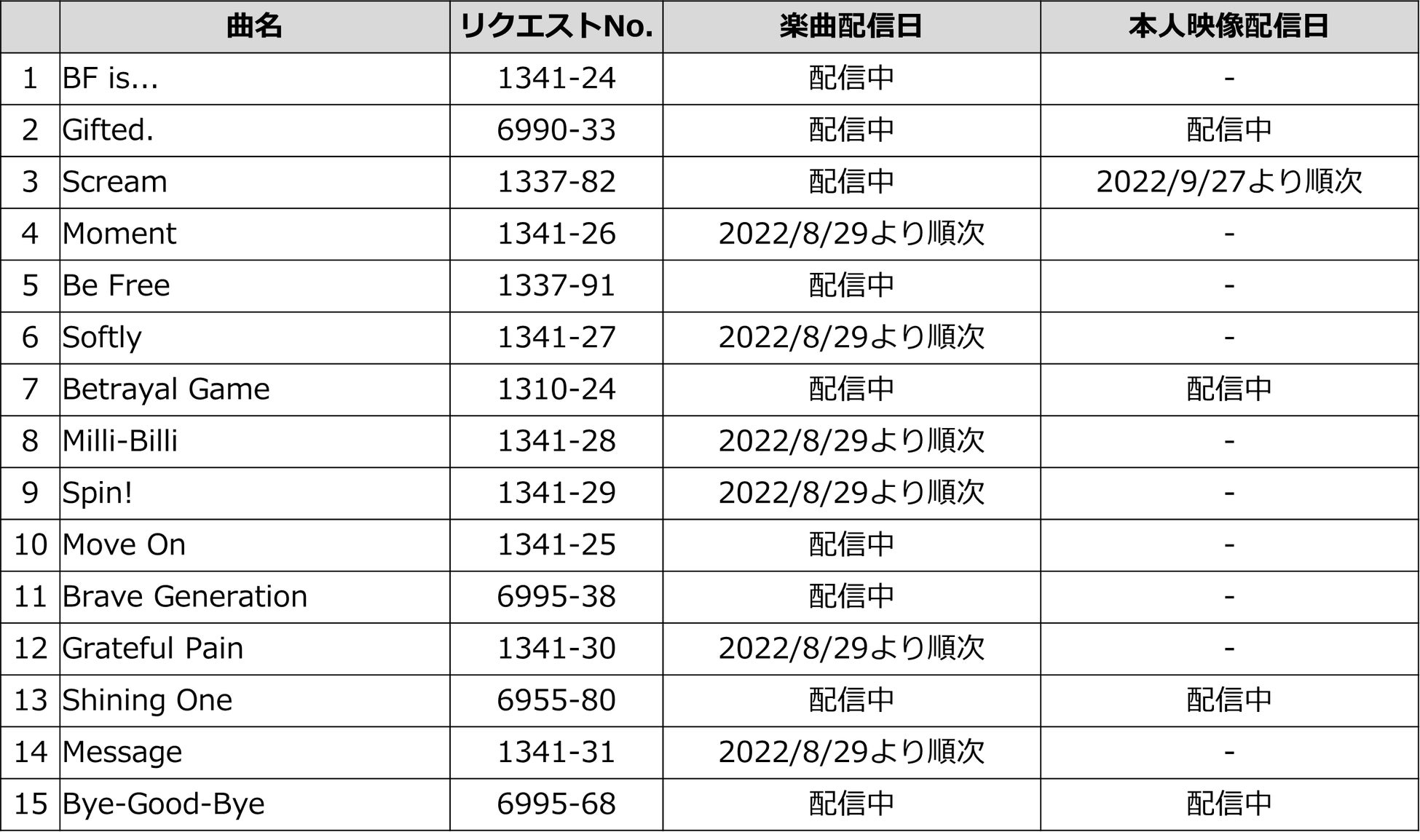 ①通信カラオケDAMに『BE:1』収録曲(全15曲)を配信。