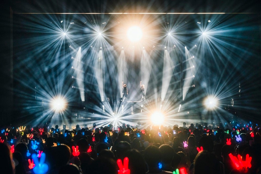4人のダンサーによるダンスコーナーを挟んで迎えた「Sexy Dance FLOOR」は、ワンループで聴かせるクールなダンスナンバー。ふたりはプロダンサーと連携を取りつつ踊り、ラップする。超多忙なふたりになぜこれが可能なのか、本当に意味がわからない――考えても答えの出ない疑問が何度も頭をよぎっているうちに、最後のブロックを迎えた。