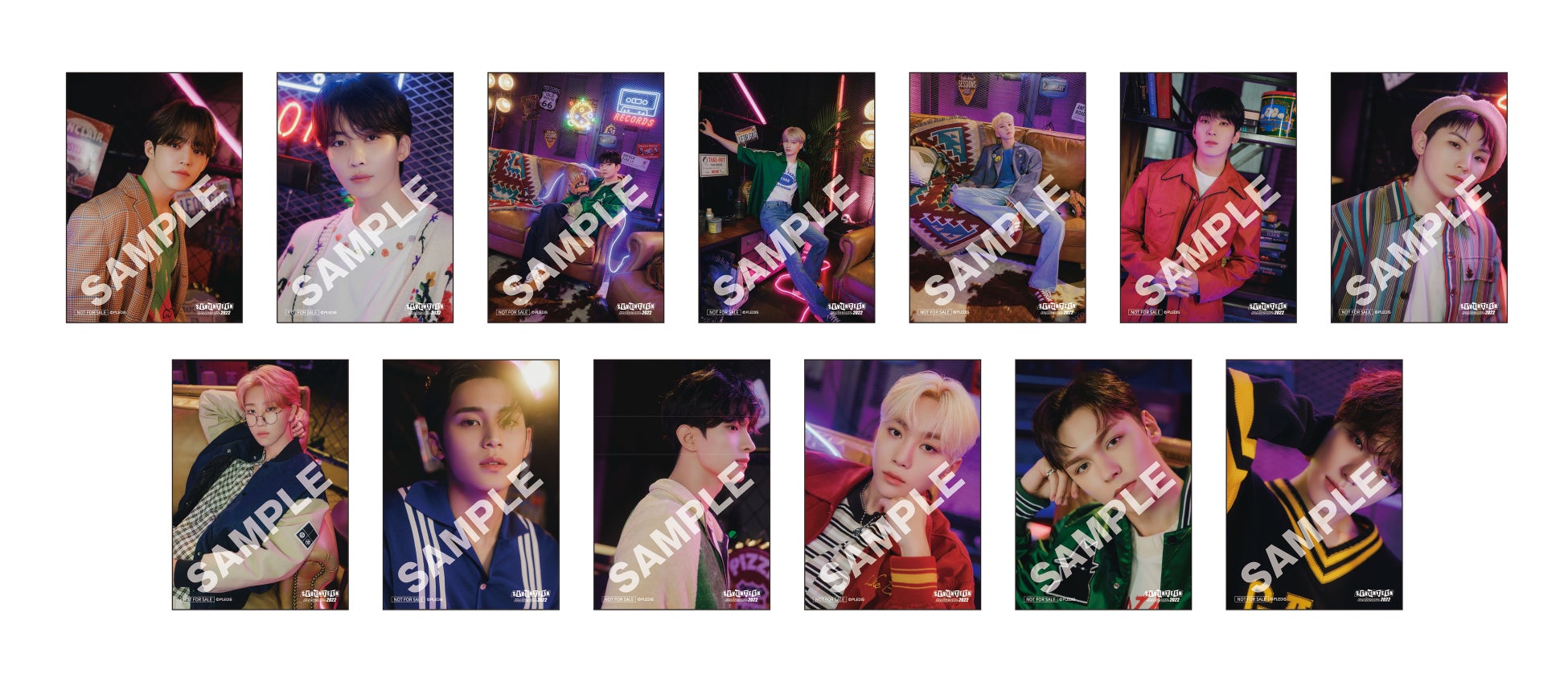 『SEVENTEEN museum 2022』にご入場いただいたお客さまに、先着で各メンバー撮りおろしソロブロマイドをランダムで1枚プレゼントいたします。