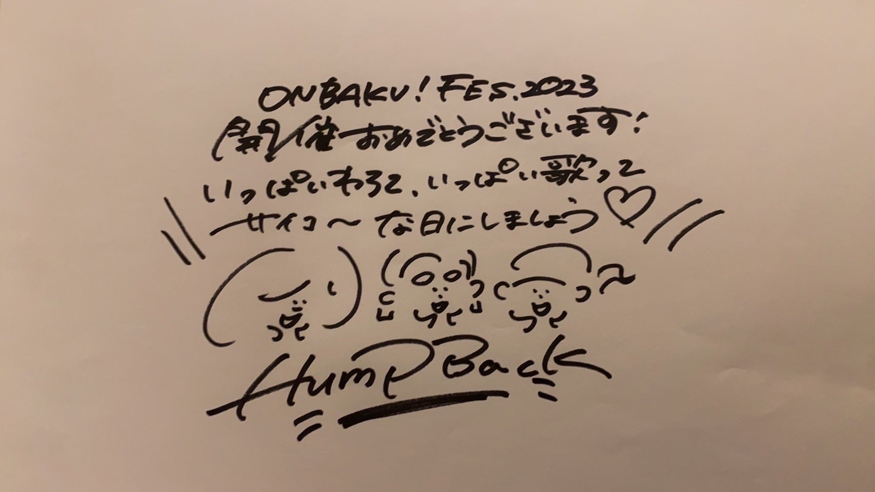 ONBAKU!FES.2023開催おめでとうございます!いっぱいわろて、いっぱい歌ってサイコ~な日にしましょう♡(手書きコメントいただきました!)