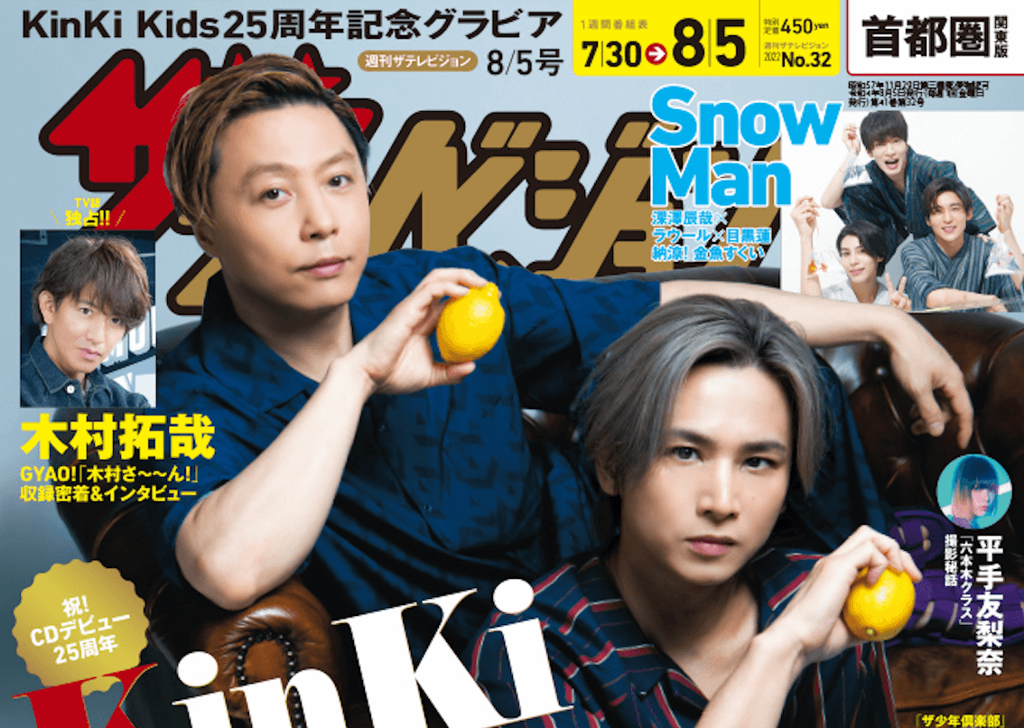 CDデビュー25周年を迎えるKinKi Kidsが久々に表紙に登場!木村拓哉の「木村さ~~ん!」の収録密着&インタビューを掲載 7/28「なにわの日」を記念してなにわ男子の撮り下ろしグラビアも!!